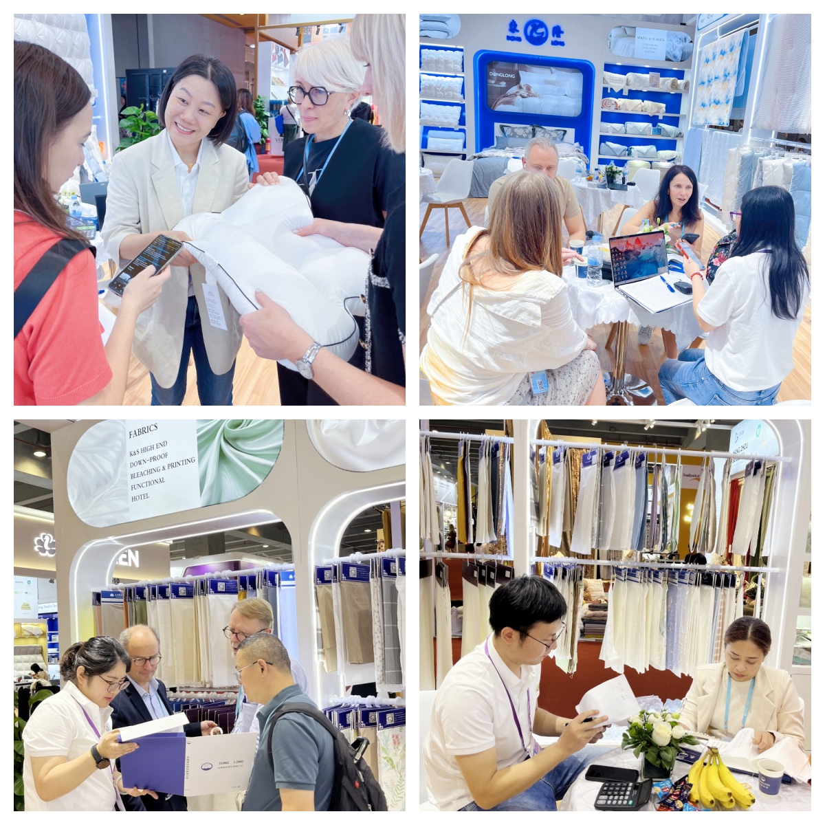 展会期间,东隆家纺团队不仅与众多长期合作的老客户再度相聚,巩固了双方的合作基础,还结识了一大批新朋友,拓宽了合作的领域,进一步扩大了东隆国际“朋友圈”,展会上的洽谈交流与合作机会,为东隆在全球市场的发展奠定了坚实的基础。